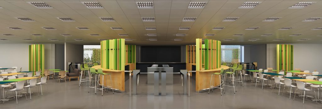En esta Planta Industrial de gran extensión está situado el comedor de personal central, único en su función que da servicio a todos los empleados de la misma. Con el objetivo de renovar el ambiente del actual comedor de carácter industrial y convertirlo en un espacio agradable, además de rediseñar la propuesta del servicio y su línea de atención, se proyectó esta remodelación integral.