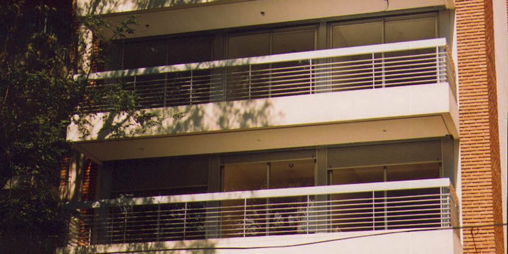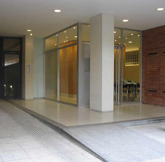 En un barrio residencial como Caballito, dotado de una buena consolidación barrial, y sobre una avenida muy arbolada se ubica este edificio de viviendas en Propiedad Horizontal. Se realizo este desarrollo inmobiliario para la venta desde el inicio. Como todo emprendimiento, es esencial el análisis de los datos del entorno y del mercado para decidir las tipologías por las cuales optar. Según los indicadores urbanísticos y agotando toda la superficie disponible, proyectamos un edificio de 13 pisos con dos unidades por piso, una de tres dormitorios y dependencia de scio (120 m2) al frente, y otra de dos dormitorios (72 m2) al contrafrente. Los materiales elegidos fueron de calidad, de envejecimiento digno y bajo mantenimiento.