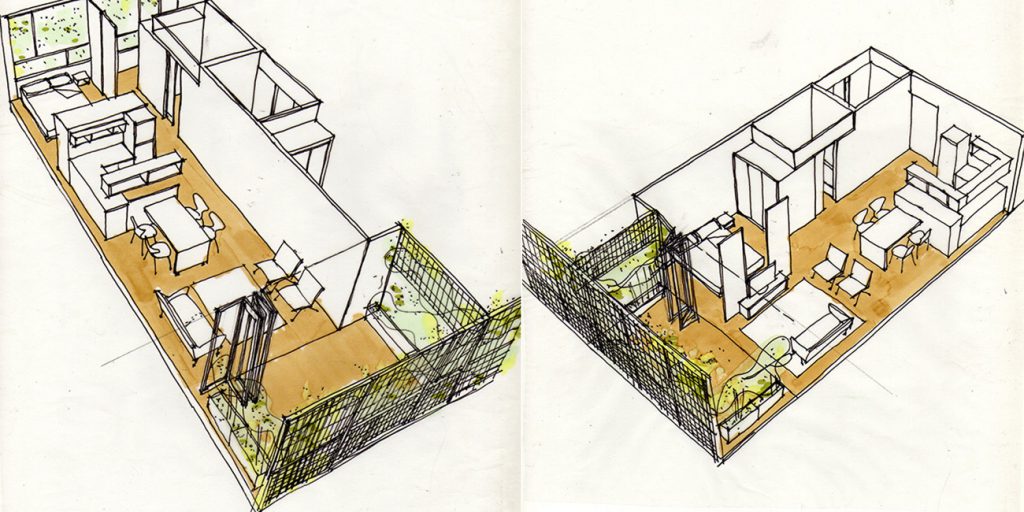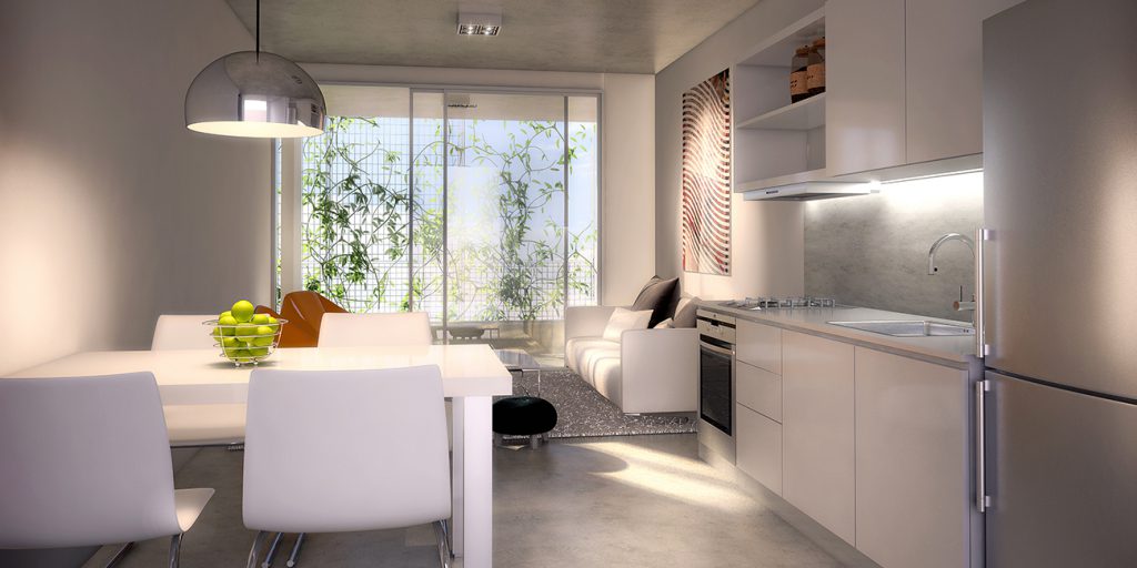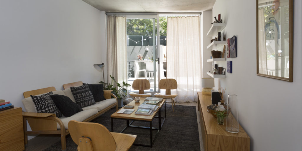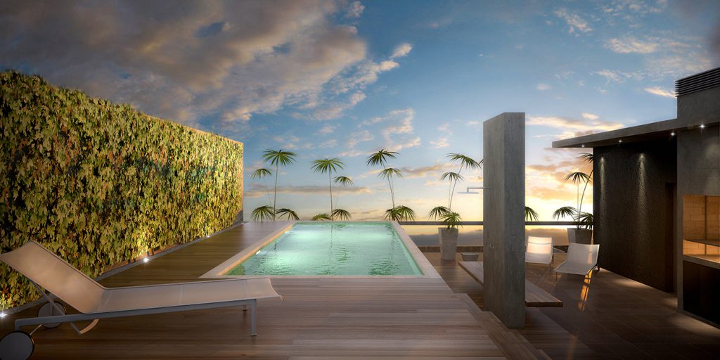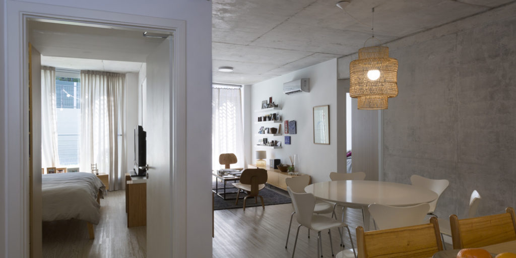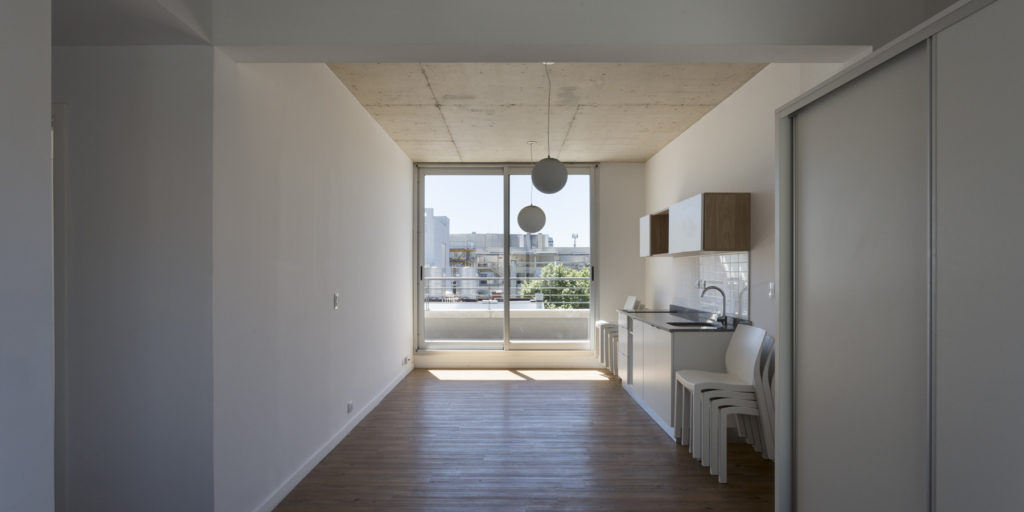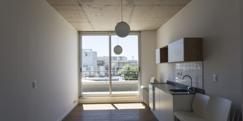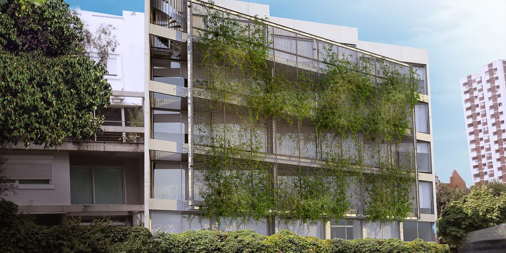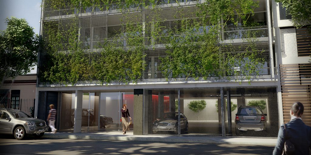 Concebido para ser un espacio funcional y flexible, este proyecto de 30 unidades prioriza el cielo abierto y la vegetación. Buenos Aires es una ciudad con la mayoría de sus días de clima templado, por lo cual los espacios semi-cubiertos son un tercer espacio habitable. Detrás de una fachada verde, se proyectó para todas las unidades una gran terraza que posibilita la integración o división de los ambientes adaptando el espacio al estilo de vida de quien lo habita. La vida actual interrelaciona funciones de vivienda y trabajo y sus limites son difusos. Este edificio esta diseñado con el concepto de flexibilidad y movilidad creando un espacio adecuado a esta forma de vida. El edificio cuenta con 20 unidades en monoambientes divisibles, ubicadas al frente y 10 unidades de mayor superficie al frente. Estas son de diferentes tipoligías: hay unidades de dos dormitorios de una planta, en duplex de dos dormitorios, algunas de ellas con terraza jardin. En el ultimo piso se ubica una terraza comun con piscina y funciones comunes como, parrillas, Sum y lavadero.