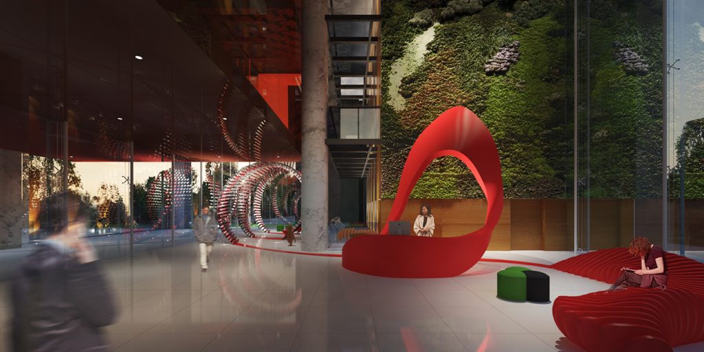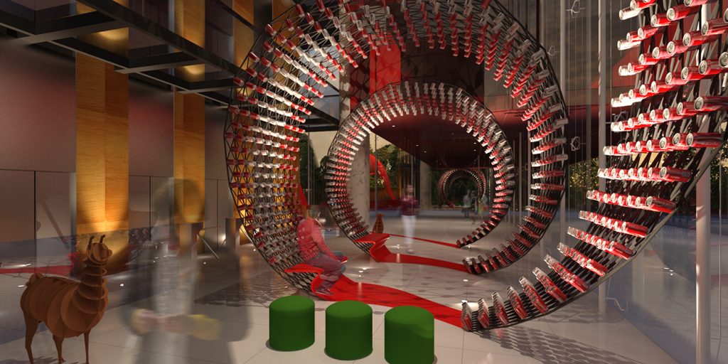 La empresa de bebidas Coca Cola, decidió construir un edificio corporativo nuevo y nos convocó a competir con otros colegas, en el anteproyecto de la arquitectura interior del mismo