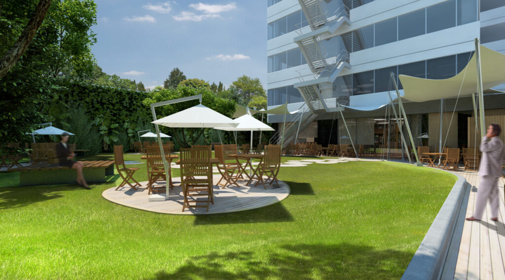 El Comedor Pluspetrol conceptualmente es el espacio de encuentro y restauracion en medio de la jornada laboral. Si bien el edificos de oficinas cuenta con abundante iluminacion natural, este espacio pretende conectar a sus usuarios con la naturaleza